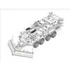 Plastikmodellbausatz eines US-amerikanischen Radschützenpanzers mit Minenräumer, 100 Teile. Länge gebaut 108 mm / Breite 32 mm.