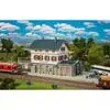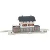 Stationsgebäude im Landhausstil der württembergischen Einheitsbahnhöfe mit einem dreigeschossigen, in den Obergeschossen schindelverkleideten Mittelbau mit hellem Anstrich und einem mit Falzziegeln bedeckten, hervorkragenden Krüppelwalmdach. Das Erdgeschoss und die zwei seitlichen, mit Zinkblech gedeckten Anbauten, die ursprünglich als Wartehalle und Güterschuppen genutzt wurden, sind gemauert. Als Fundament dient ein zur Straßenseite hin mit Werksteinen verblendeter Betonsockel mit Stufen, Rampe, Geländer und Bahnsteig.